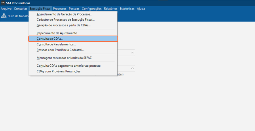 Atualizado em: 03/03/2026Todas as CDAs enviadas pela Fazenda para o SAJ Procuradorias podem ser consultadas pelos usuários do sistema. Veja como:
