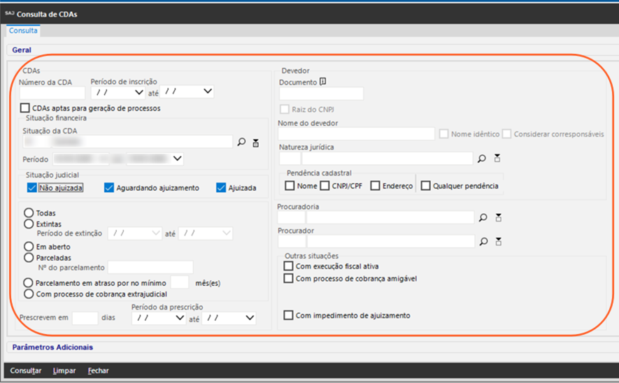 Publicado em: 15/01/2026Para auxiliar na gestão e controle de demandas, o SAJ Procuradorias oferece relatórios que exibem, de forma organizada, diversas informações. A consulta de CDAs é uma das telas desenvolvidas para contribuir com a gestão e possibilita identificar todas as Certidões de Dívida Ativa e suas respectivas situações além de outras diversas informações.