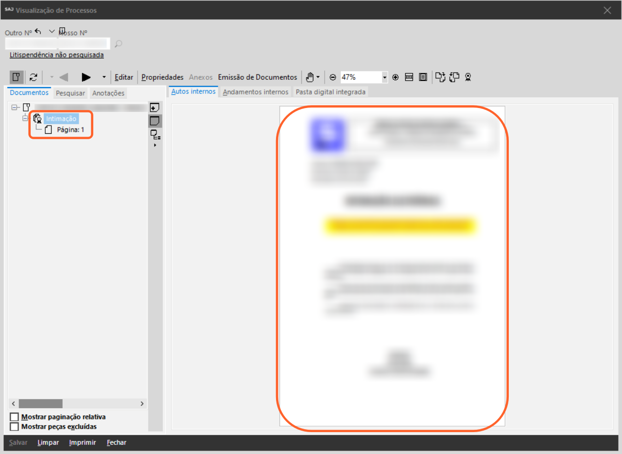 Quando uma das partes de uma intimação representa uma procuradoria, essas intimações são importadas para dentro do sistema SAJ Procuradorias via integração para que o procurador faça uma apreciação e/ou manifestação.