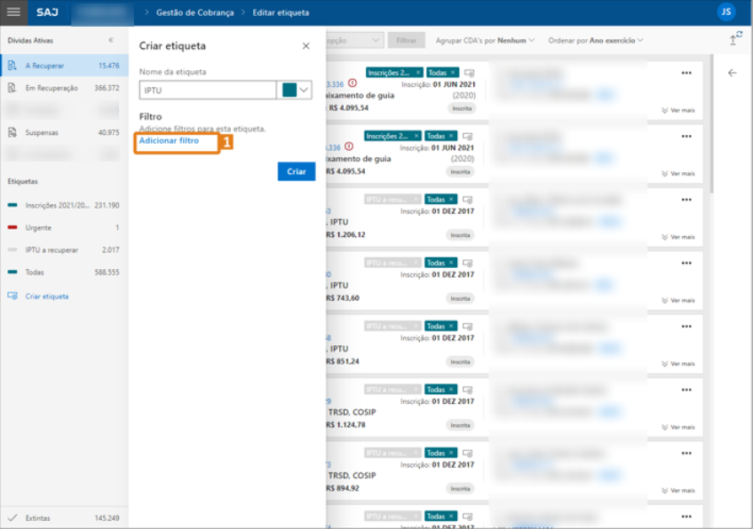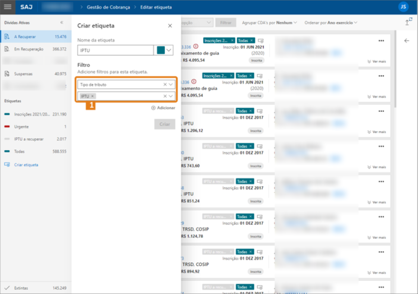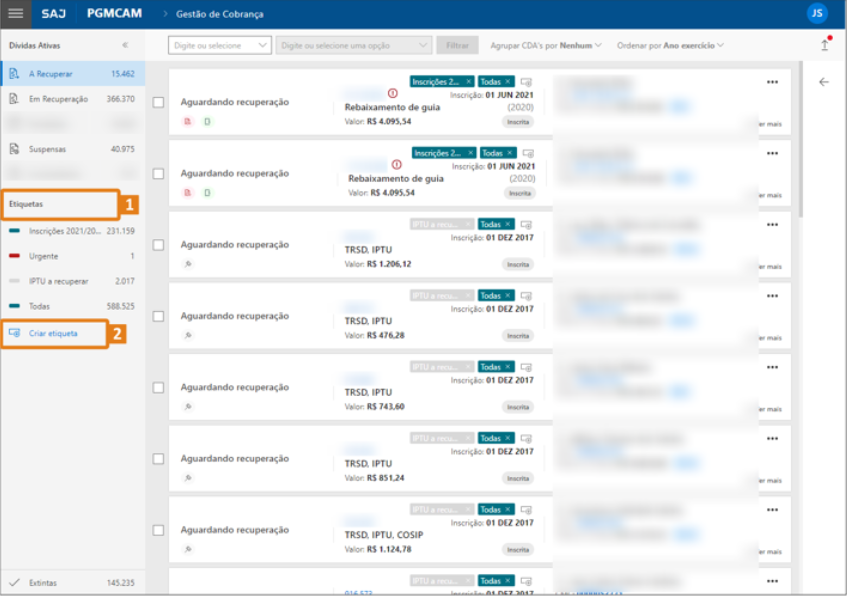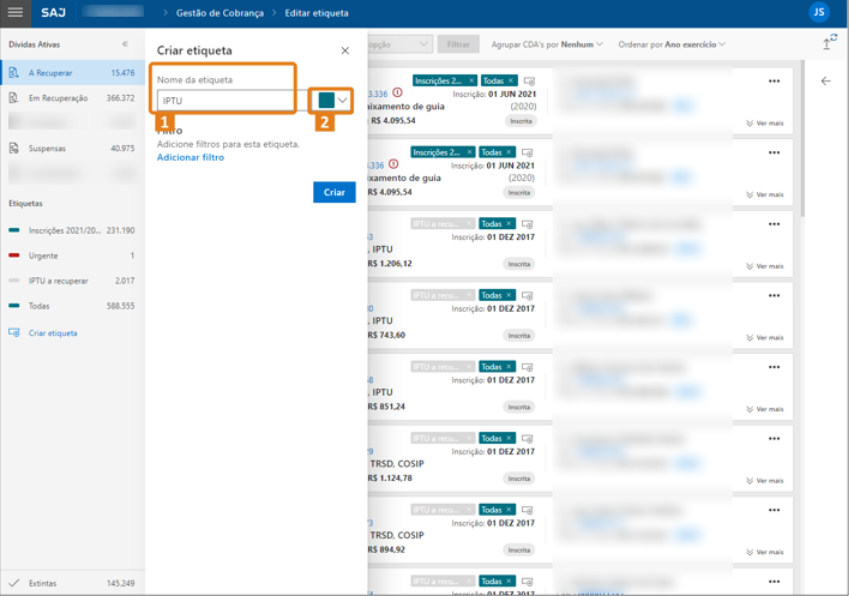 Como funcionam e como posso criar as minhas etiquetas no módulo Gestão de Cobranças no SAJ Procuradorias?Versão do sistema: 25.2.1-0
