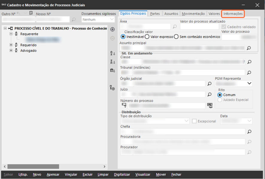 Passo 3: uma vez carregadas as informações do processo, clique na aba ‘Informações’.