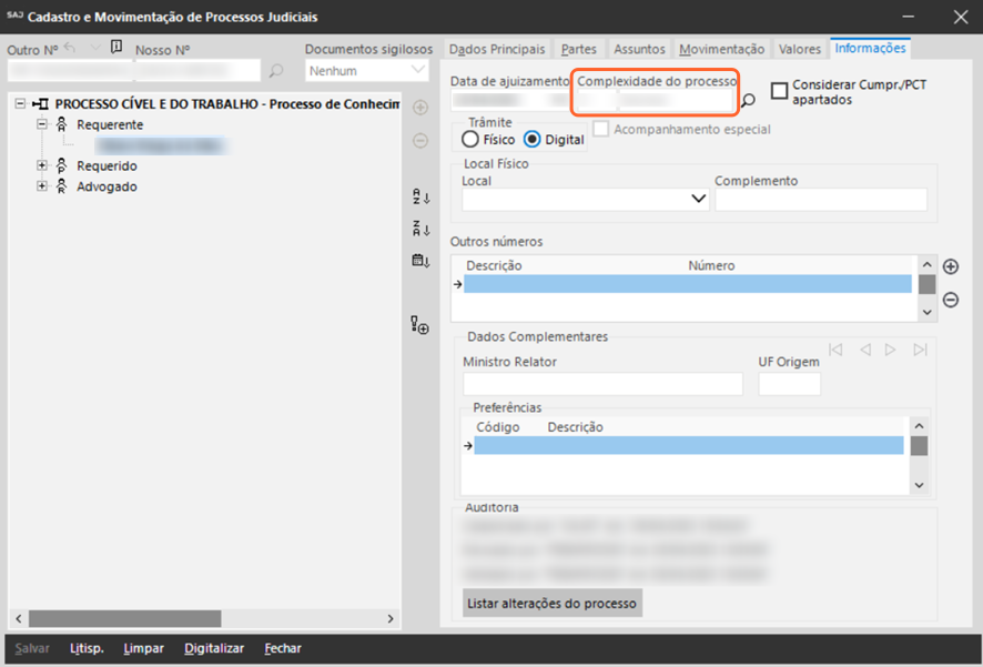 Como consulto a complexidade do processo em seu cadastro no SAJ Procuradorias?Versão do sistema: 5.2.11-3