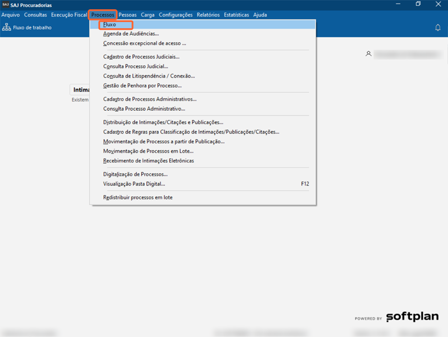 1. Acesse o menu ‘Processos‘ e clique na opção ‘Fluxo‘.
