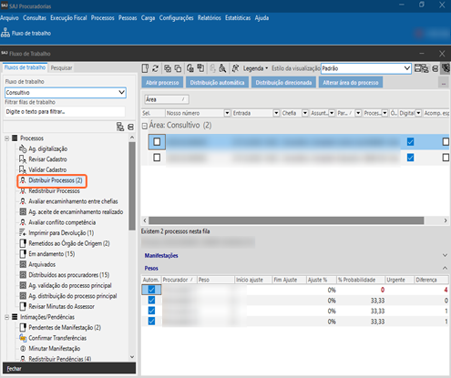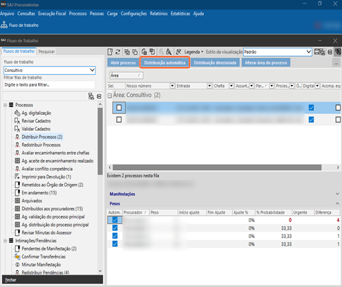 DicaUtilize a distribuição automática sempre que possível, pois essa é a maneira mais prática de manter a carga de trabalho dos procuradores equilibrada.