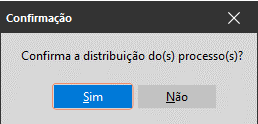 4. Neste momento o sistema exibirá uma janela de Confirmação. Clique em ‘Sim‘ para confirmar a distribuição do processo.