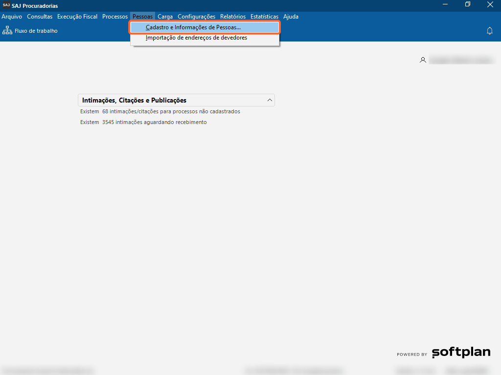 Com o SAJ Procuradorias aberto, clique sobre o menu ‘Pessoas‘.